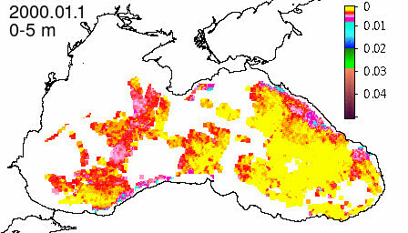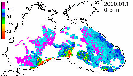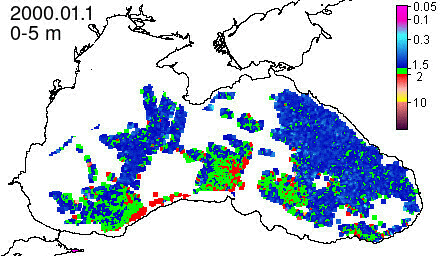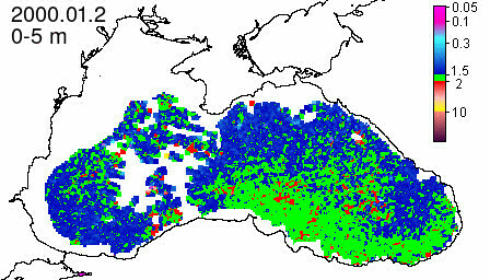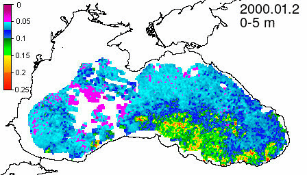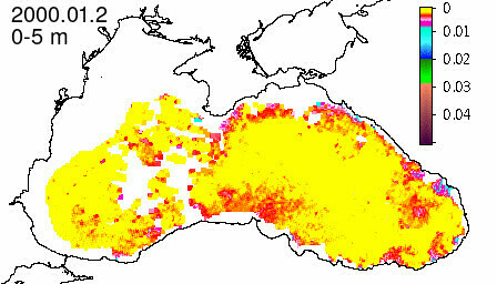 chlorophyll a concentration, mg m^-3