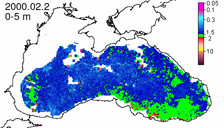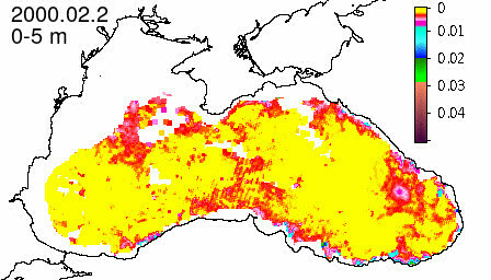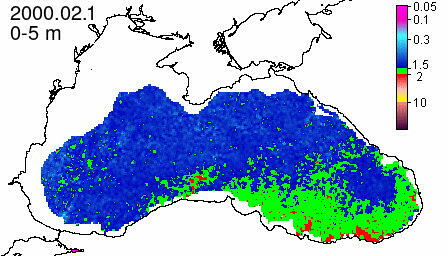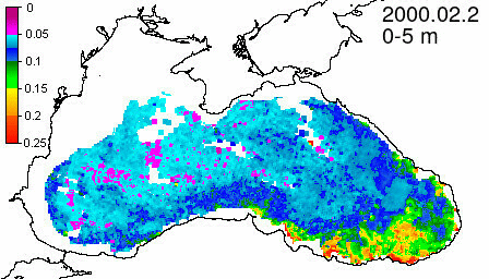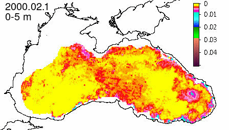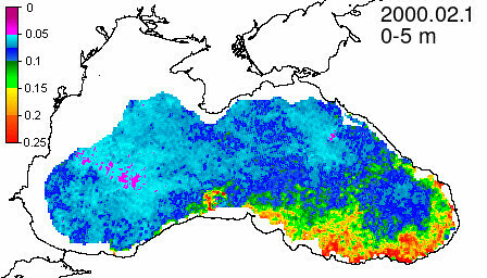chlorophyll a concentration, mg m^-3