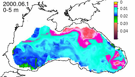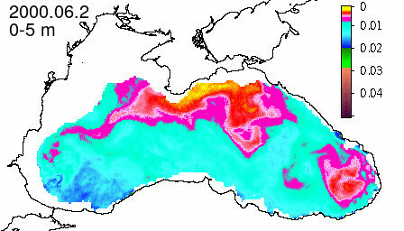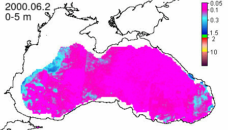 chlorophyll a concentration, mg m^-3