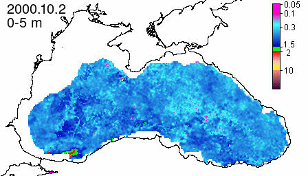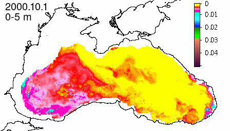 chlorophyll a concentration, mg m^-3