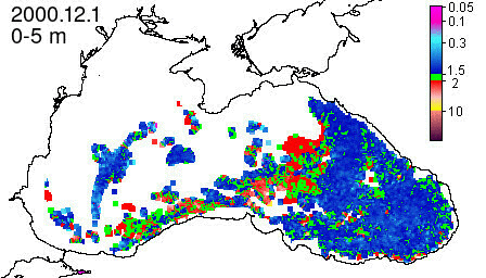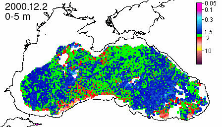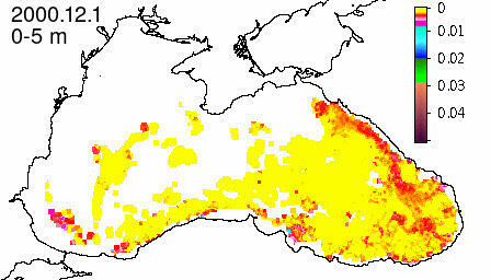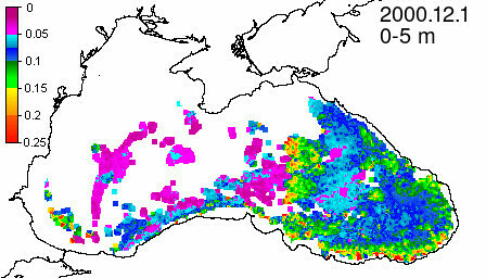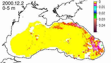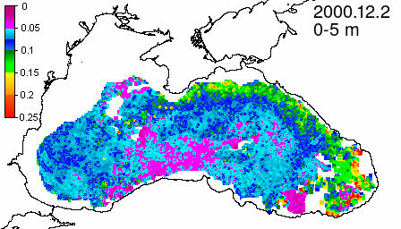 colored detrital matter absorption coefficient at 490 nm, m^-1