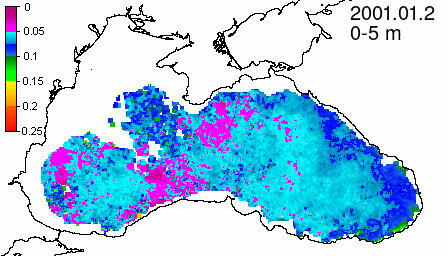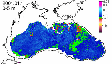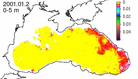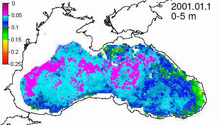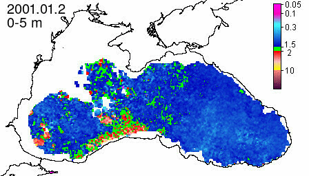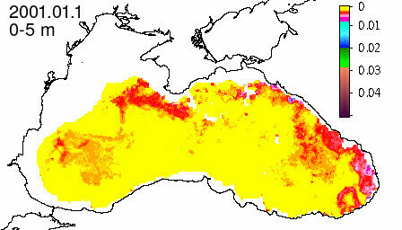 chlorophyll a concentration, mg m^-3