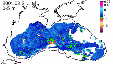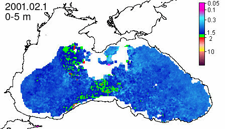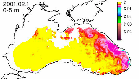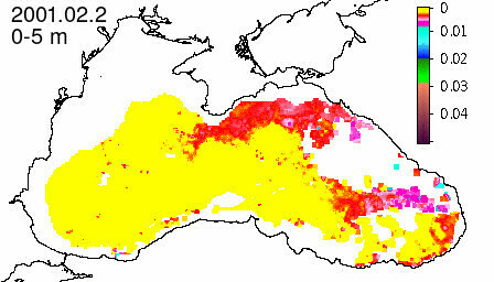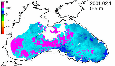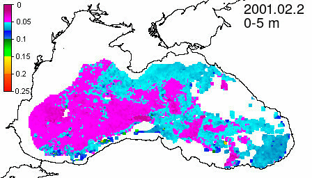 colored detrital matter absorption coefficient at 490 nm, m^-1
