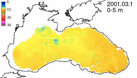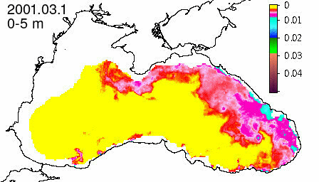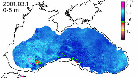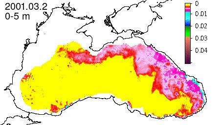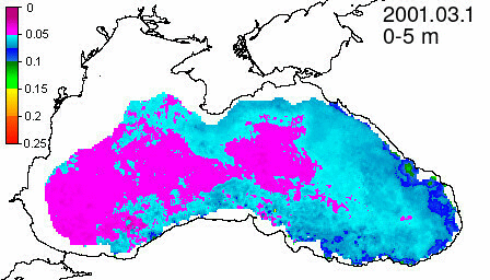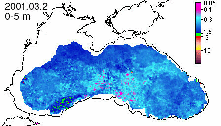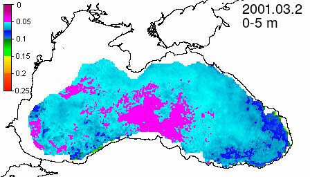 colored detrital matter absorption coefficient at 490 nm, m^-1