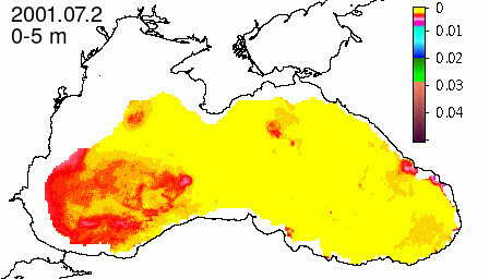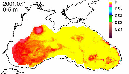 chlorophyll a concentration, mg m^-3