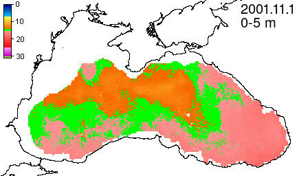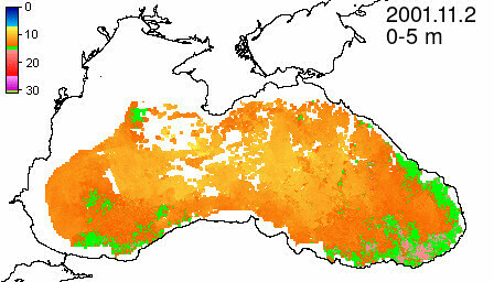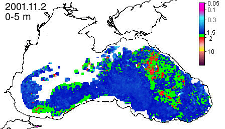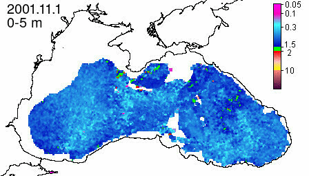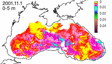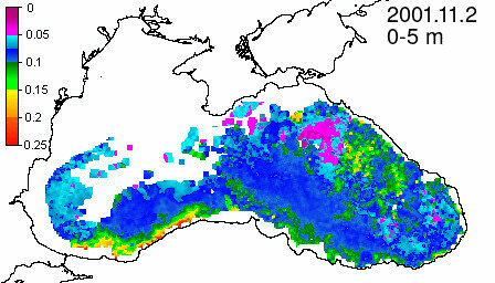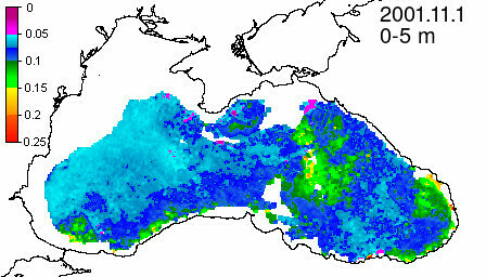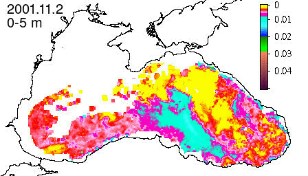 colored detrital matter absorption coefficient at 490 nm, m^-1