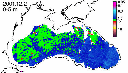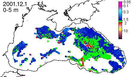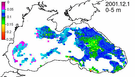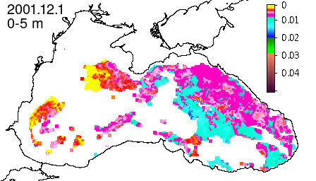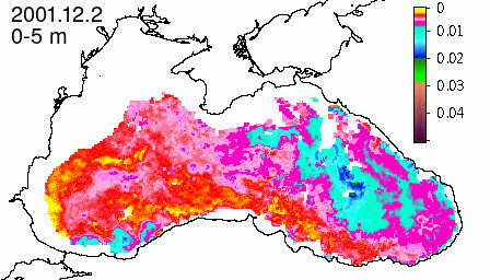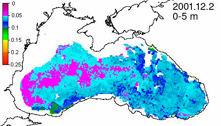 colored detrital matter absorption coefficient at 490 nm, m^-1