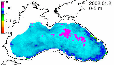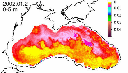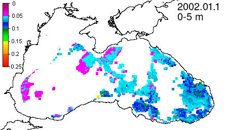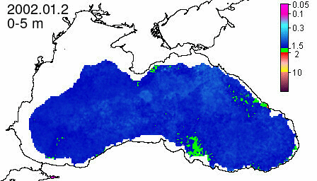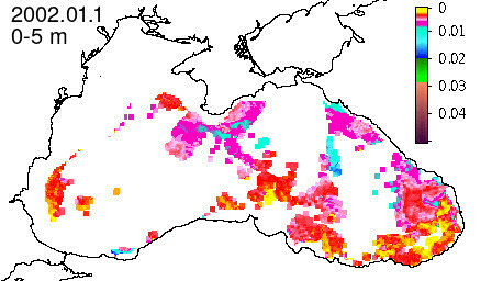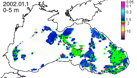 chlorophyll a concentration, mg m^-3