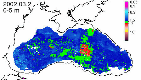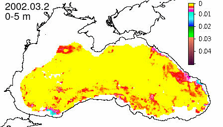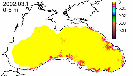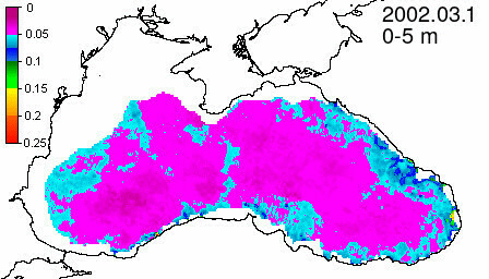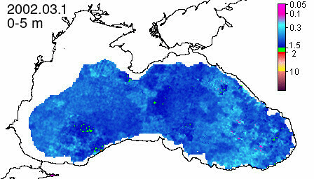 chlorophyll a concentration, mg m^-3