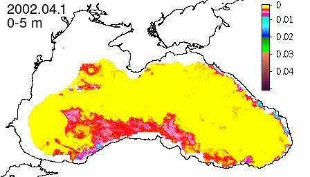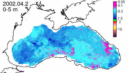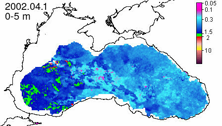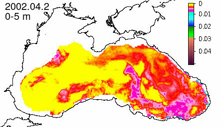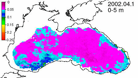 colored detrital matter absorption coefficient at 490 nm, m^-1