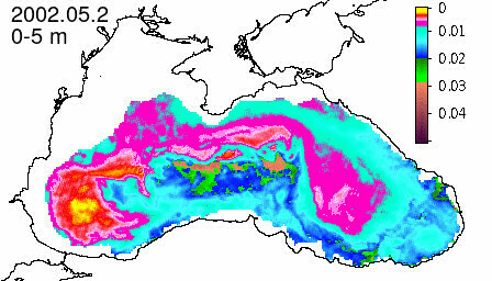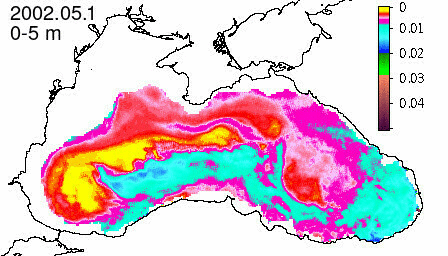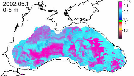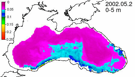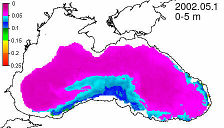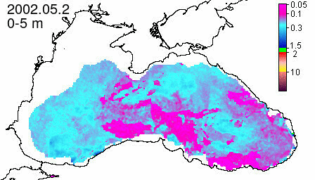 colored detrital matter absorption coefficient at 490 nm, m^-1