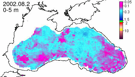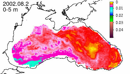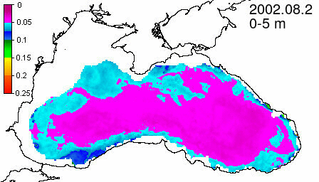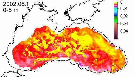 colored detrital matter absorption coefficient at 490 nm, m^-1
