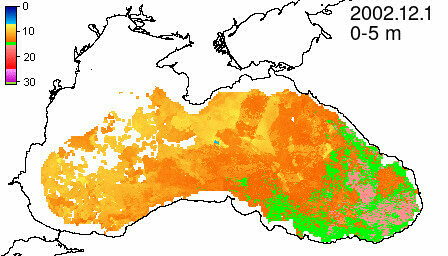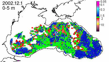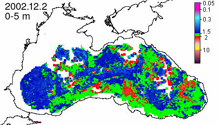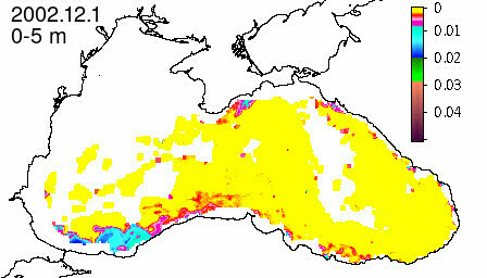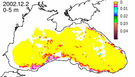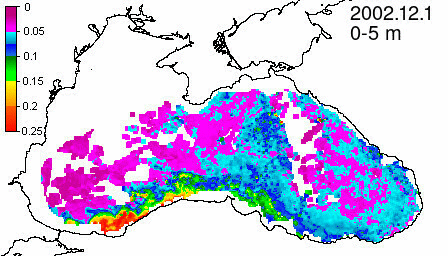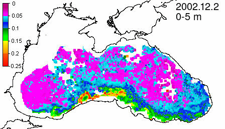 colored detrital matter absorption coefficient at 490 nm, m^-1