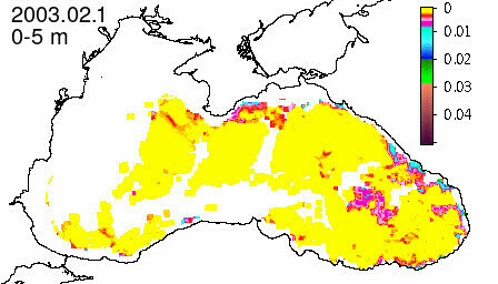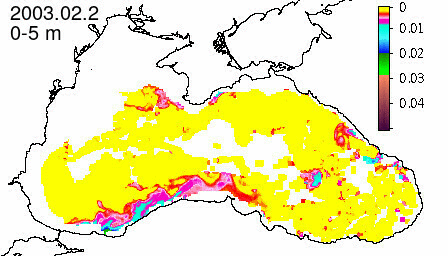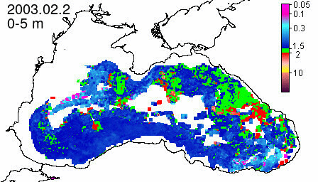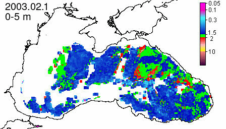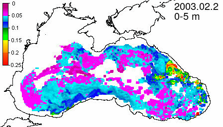 colored detrital matter absorption coefficient at 490 nm, m^-1