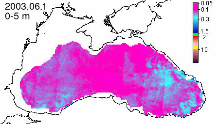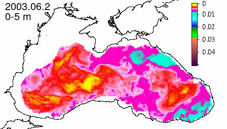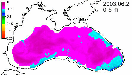 colored detrital matter absorption coefficient at 490 nm, m^-1