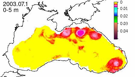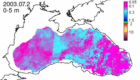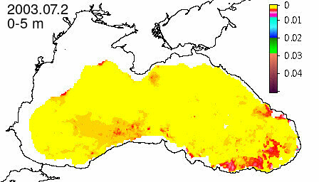 colored detrital matter absorption coefficient at 490 nm, m^-1
