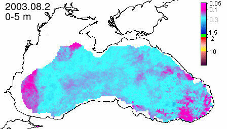 colored detrital matter absorption coefficient at 490 nm, m^-1