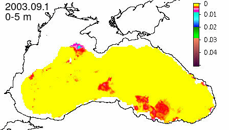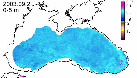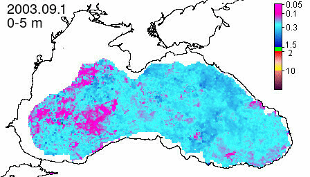 colored detrital matter absorption coefficient at 490 nm, m^-1