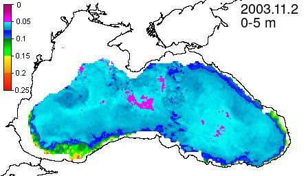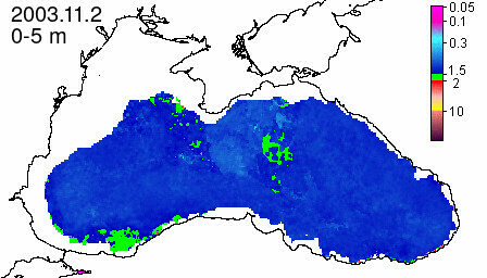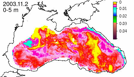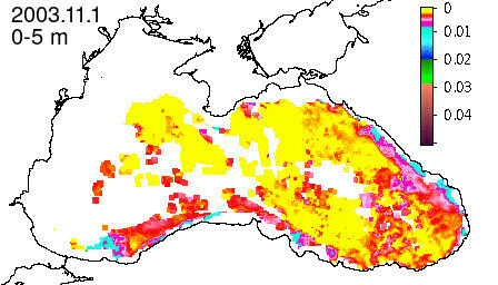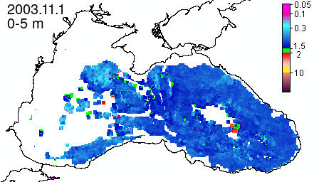 chlorophyll a concentration, mg m^-3