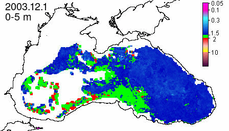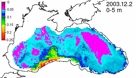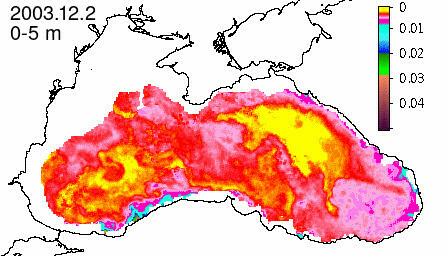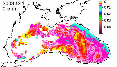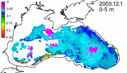 colored detrital matter absorption coefficient at 490 nm, m^-1