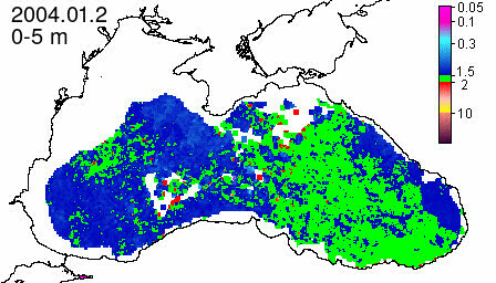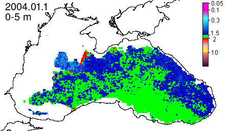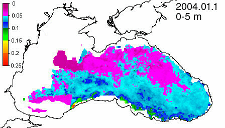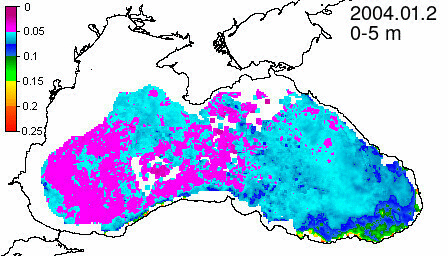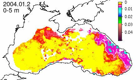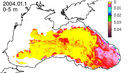 colored detrital matter absorption coefficient at 490 nm, m^-1