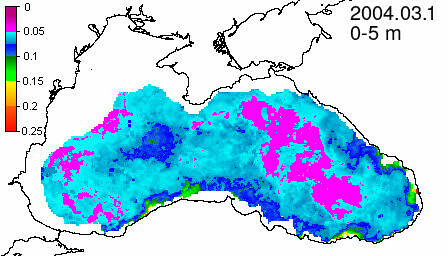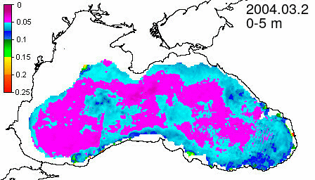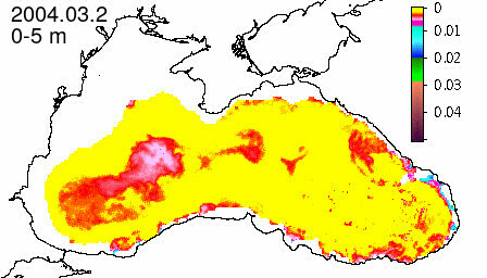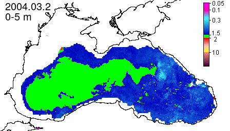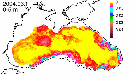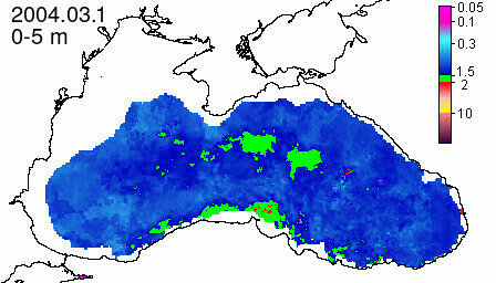 chlorophyll a concentration, mg m^-3