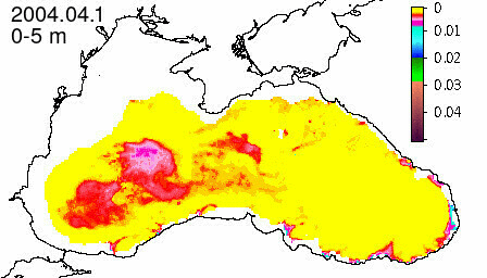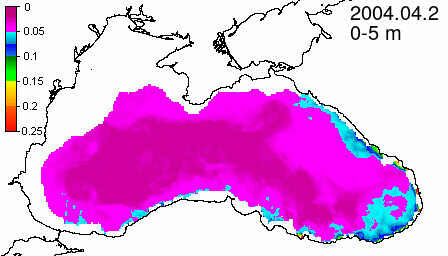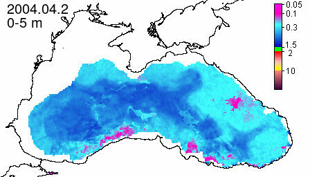 colored detrital matter absorption coefficient at 490 nm, m^-1