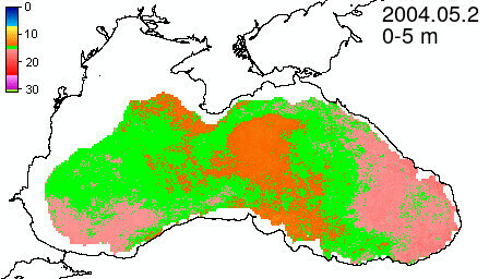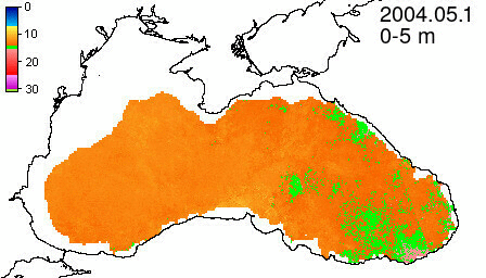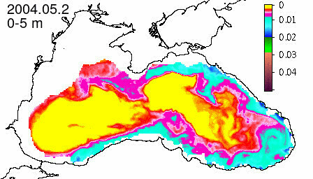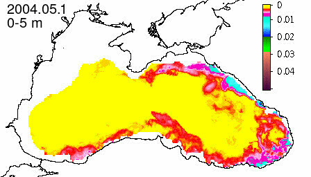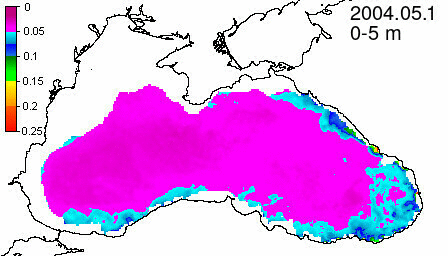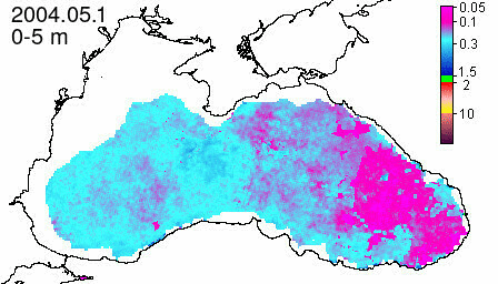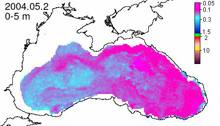 colored detrital matter absorption coefficient at 490 nm, m^-1