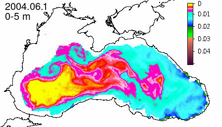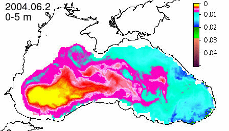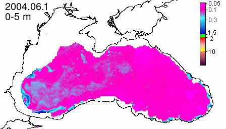 chlorophyll a concentration, mg m^-3
