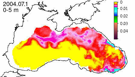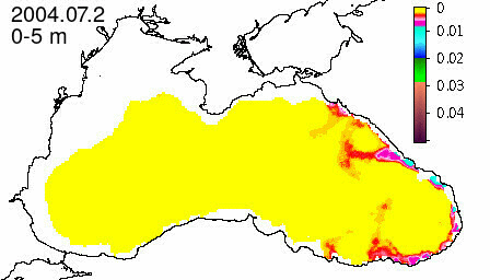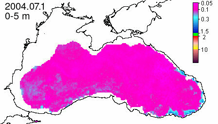 chlorophyll a concentration, mg m^-3