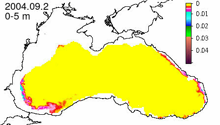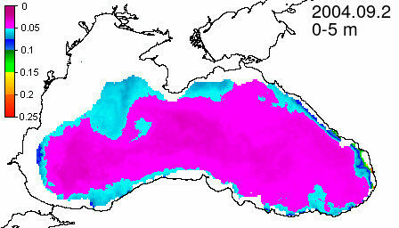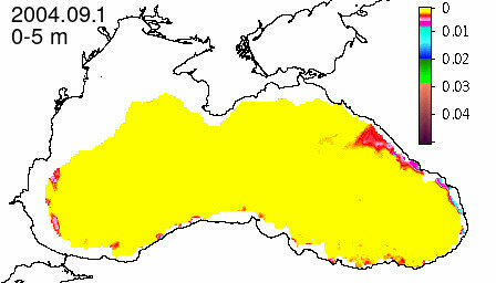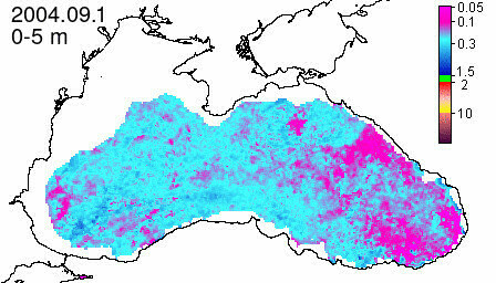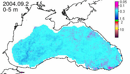 colored detrital matter absorption coefficient at 490 nm, m^-1