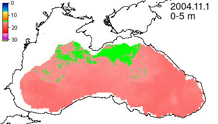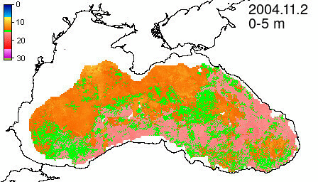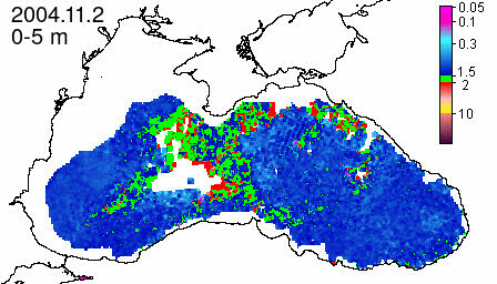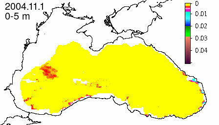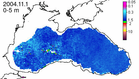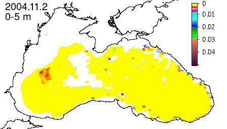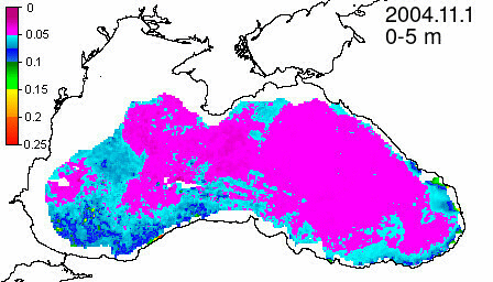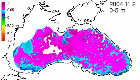 colored detrital matter absorption coefficient at 490 nm, m^-1