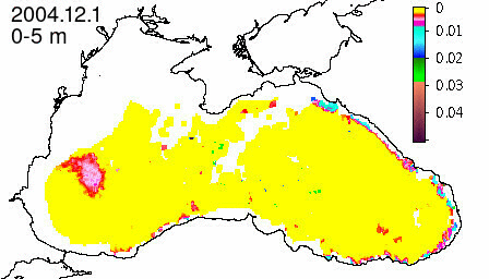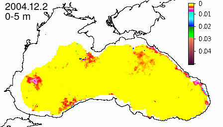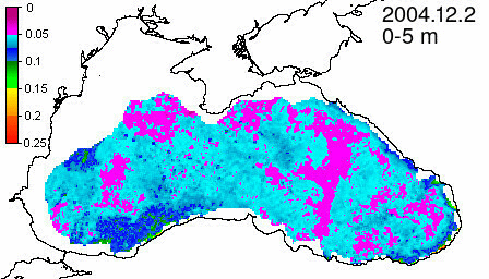 colored detrital matter absorption coefficient at 490 nm, m^-1