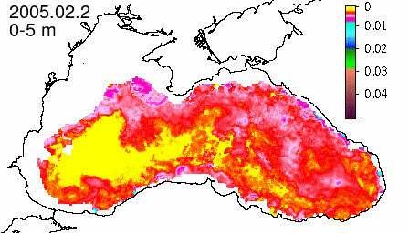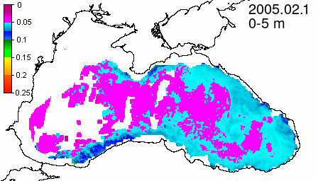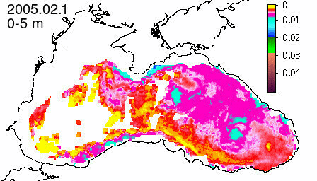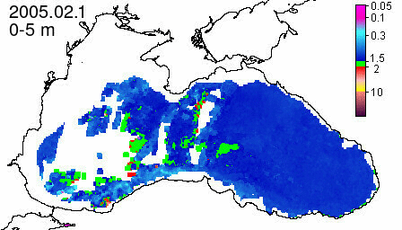 chlorophyll a concentration, mg m^-3