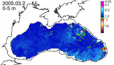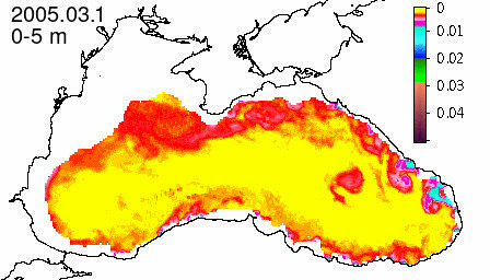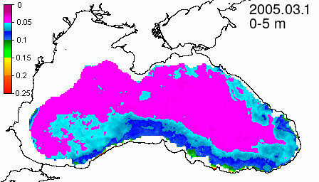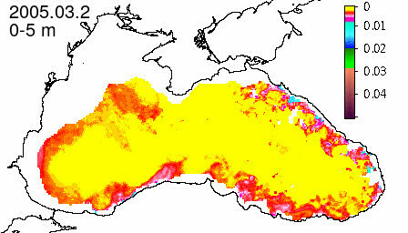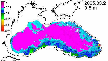 colored detrital matter absorption coefficient at 490 nm, m^-1
