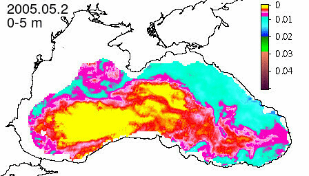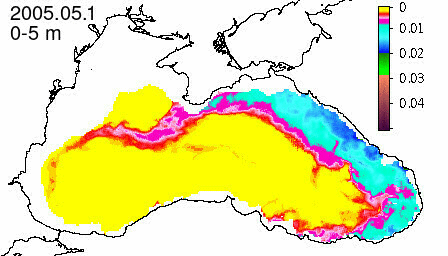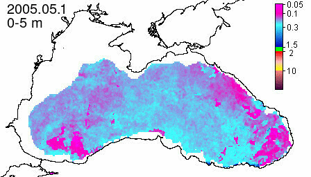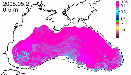 chlorophyll a concentration, mg m^-3