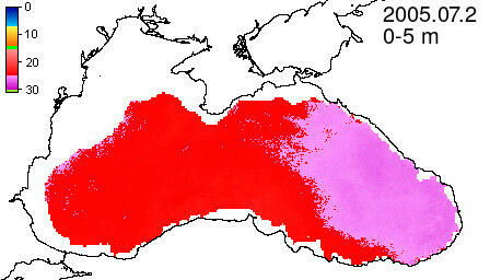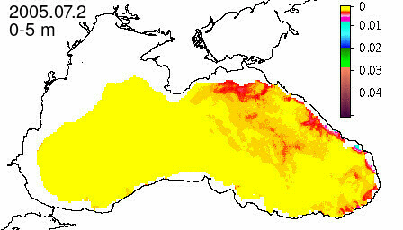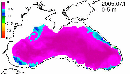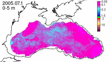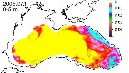 colored detrital matter absorption coefficient at 490 nm, m^-1