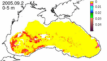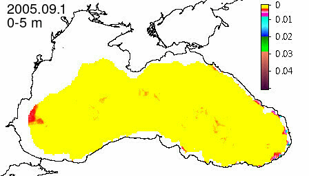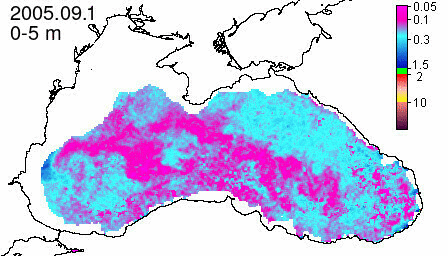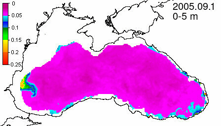 chlorophyll a concentration, mg m^-3