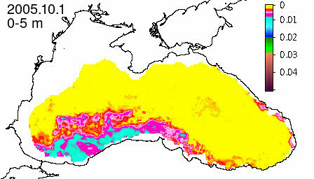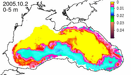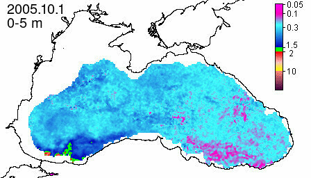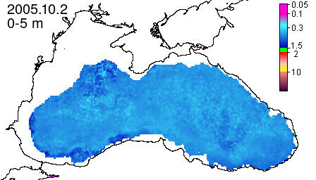 colored detrital matter absorption coefficient at 490 nm, m^-1