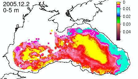 chlorophyll a concentration, mg m^-3