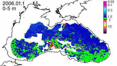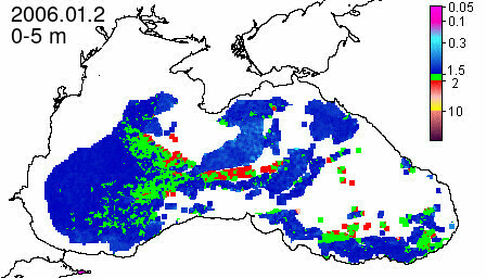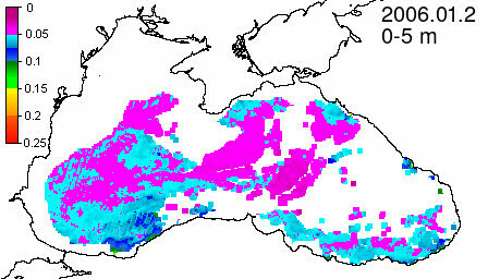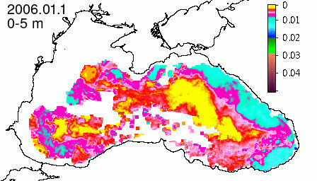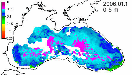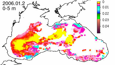 colored detrital matter absorption coefficient at 490 nm, m^-1
