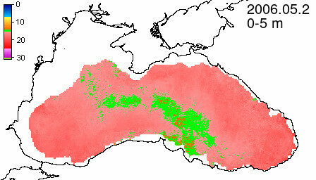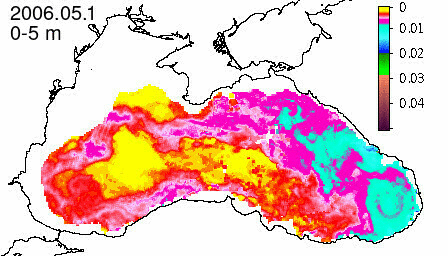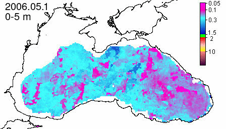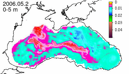 colored detrital matter absorption coefficient at 490 nm, m^-1
