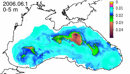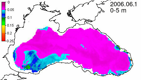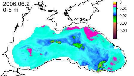colored detrital matter absorption coefficient at 490 nm, m^-1