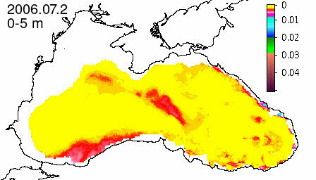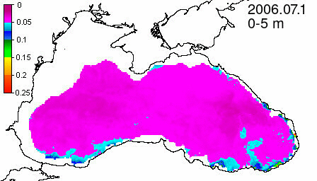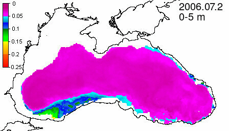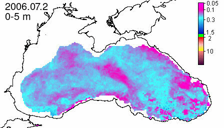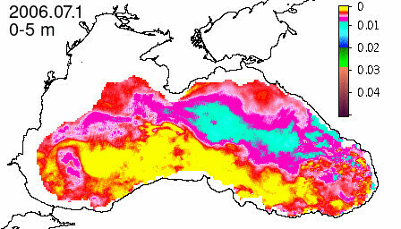 colored detrital matter absorption coefficient at 490 nm, m^-1