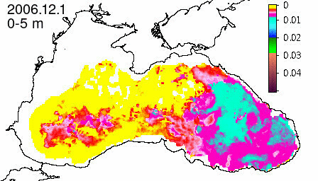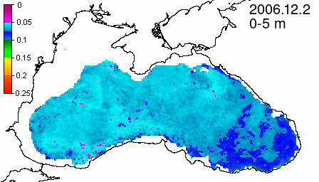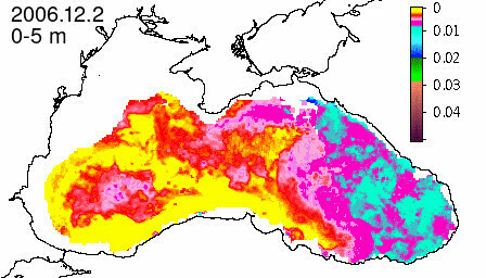colored detrital matter absorption coefficient at 490 nm, m^-1
