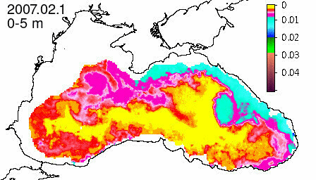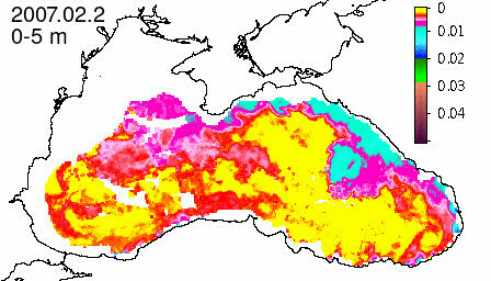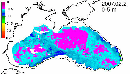 colored detrital matter absorption coefficient at 490 nm, m^-1