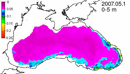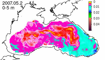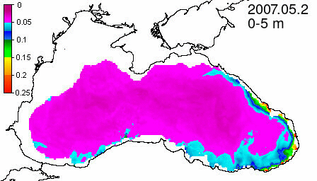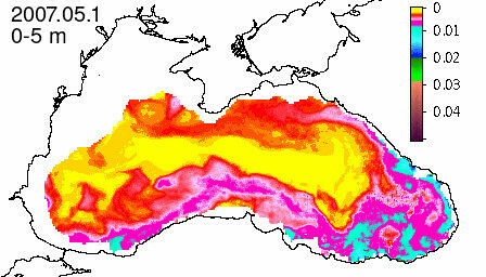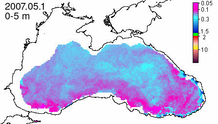 chlorophyll a concentration, mg m^-3