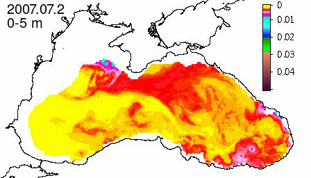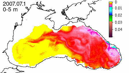 chlorophyll a concentration, mg m^-3