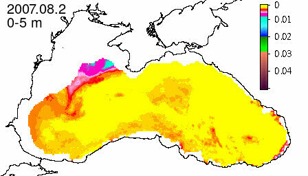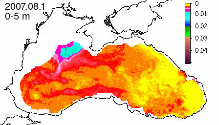 chlorophyll a concentration, mg m^-3