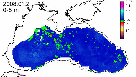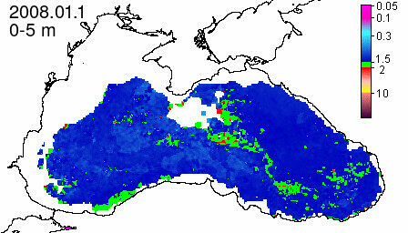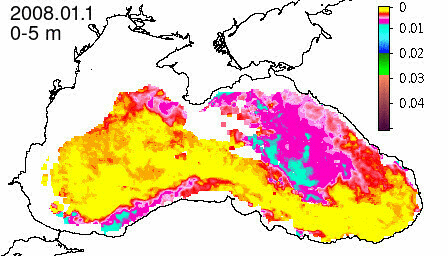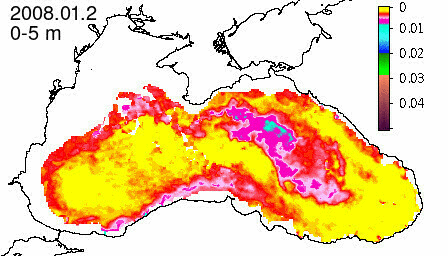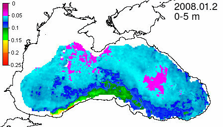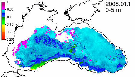 colored detrital matter absorption coefficient at 490 nm, m^-1
